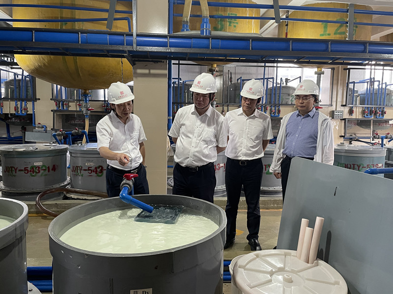 楊國安一行深入廣州建豐合資企業佛山村田精密材料有限公司、廣州建豐生產車間,詳細了解稀土資源高效利用、生產經營現狀、科技創新發展、黨的建設及下一步高質量發展目標方向、重點舉措等方面工作情況,組織召開主題教育調查研究座談會與干部職工進行座談交流,對廣州建豐各項工作取得的積極進展和顯著成效表示了充分肯定。